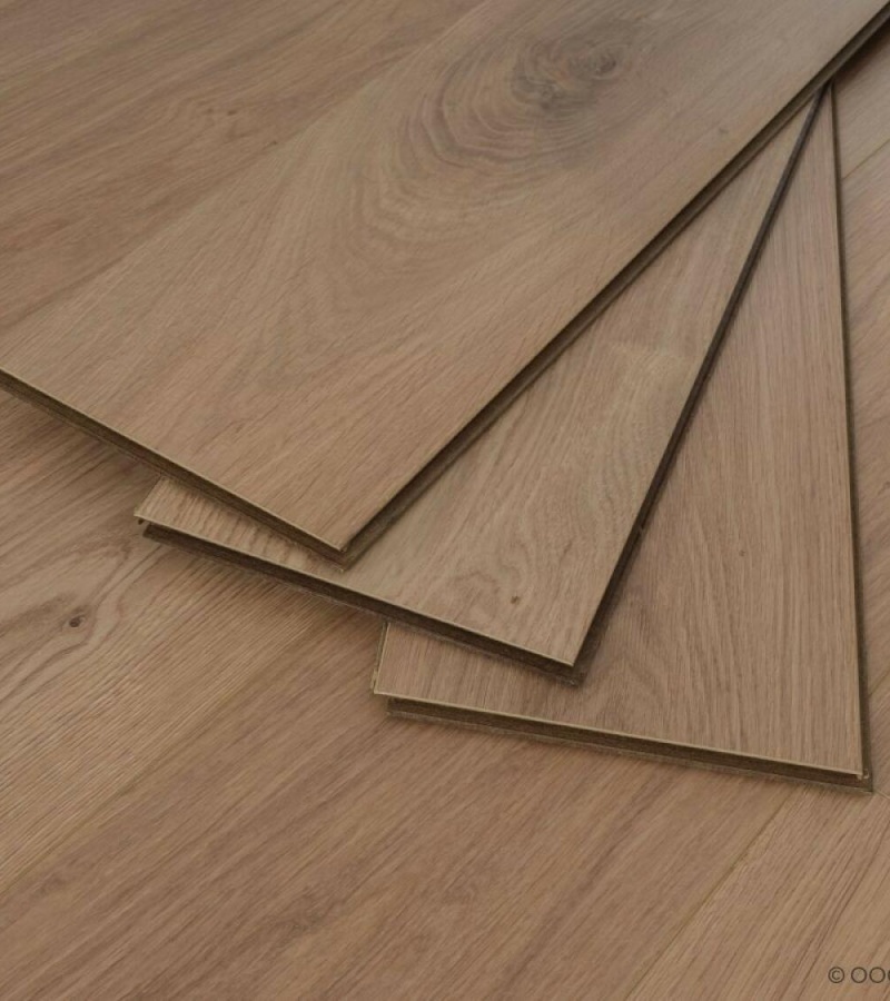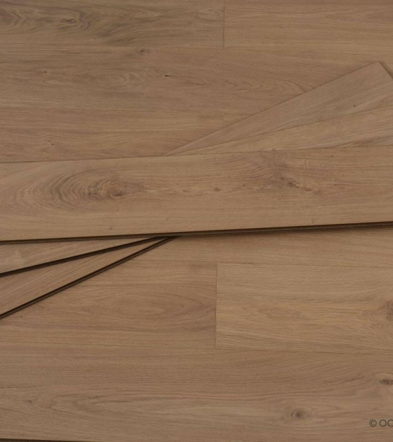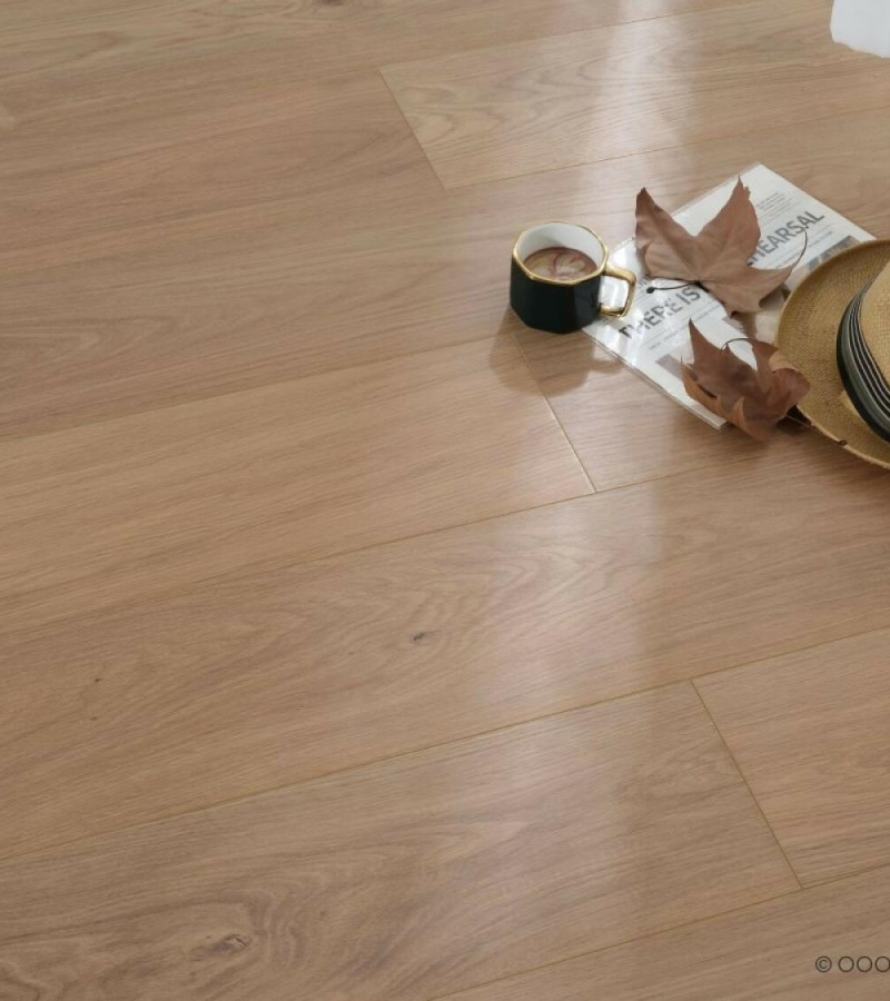 Поверхность ламината имитирует дуб, что придает помещению уют, теплоту и уникальность. Влагостойкость позволяет использовать его в ванных комнатах и кухнях. Ламинат устойчив к УФ-лучам, что сохраняет его внешний вид даже при длительном воздействии солнечного света.