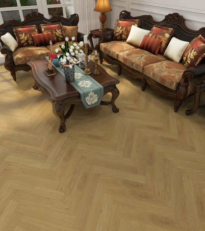 Покрытие полностью готово к эксплуатации и не требует дополнительной отделки. Верхний слой с узором «Елочка» гармонично вписывается в любой интерьер и сочетается с любыми материалами стен и потолка. Толщина доски составляет 12 мм, что обеспечивает прочность и устойчивость к прогибу. Ламинированное покрытие выдерживает значительные нагрузки от мебели и не оставляет следов от ножек и царапин.