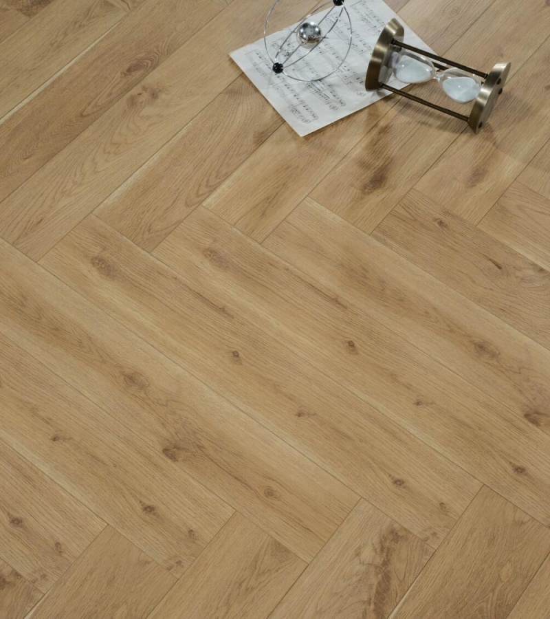 Покрытие полностью готово к использованию и не требует дополнительной отделки. Верхний слой с рисунком «Ёлочка» гармонично вписывается в любой интерьер и сочетается с различными отделочными материалами стен и потолка. Толщина доски составляет 12 мм, что обеспечивает прочность пола и устойчивость к прогибу. Ламинат выдерживает значительные нагрузки от мебели, не оставляя следов от ножек и царапин. Также он обладает хорошими теплоизоляционными свойствами, предотвращая проникновение холода внутрь помещения.