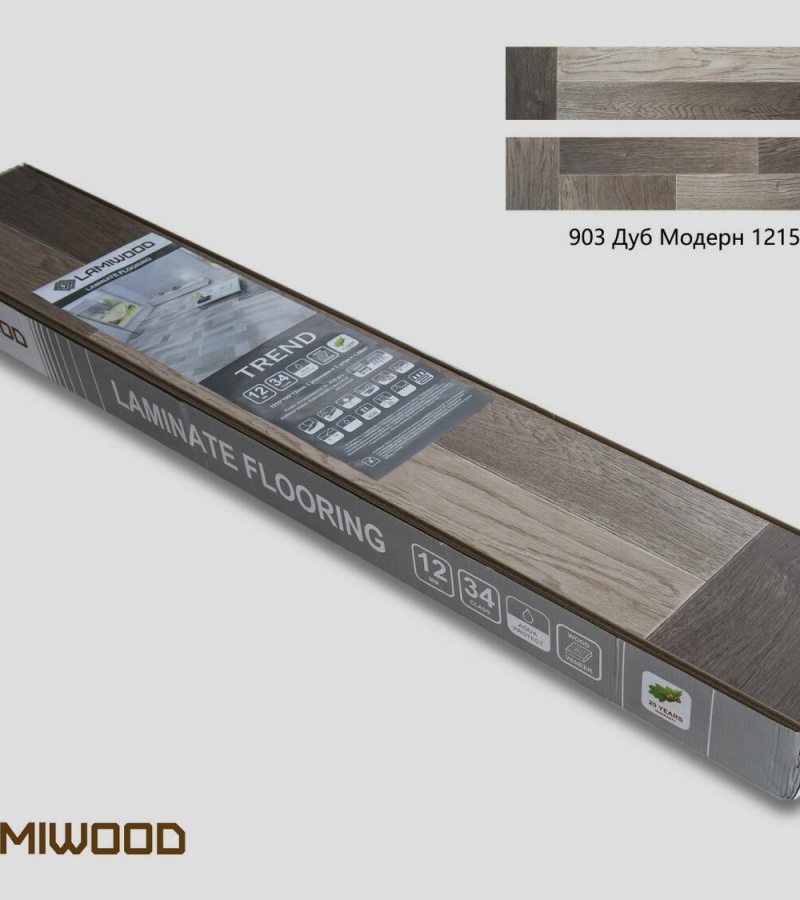 Ламинат Lamiwood TREND 903 «Дуб Модерн» из коллекции TREND стал одним из самых популярных товаров. Этот ламинат производится в Китае и имеет 34 класс износостойкости, что делает его подходящим для различных помещений благодаря устойчивости к влаге и истиранию, а также экологической безопасности.