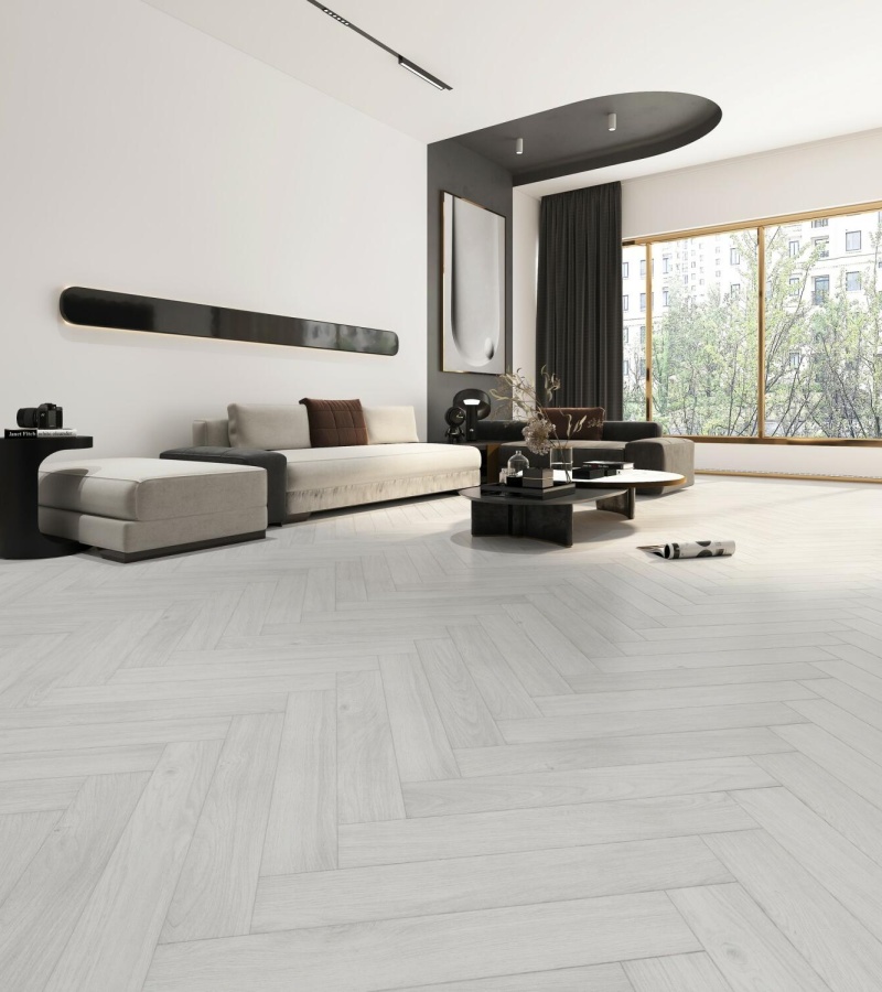 Ламинат полностью готов к использованию и не требует дополнительной отделки. Верхний слой с узором «Елочка» гармонично вписывается в любой интерьер и хорошо сочетается с различными отделочными материалами стен и потолка. Толщина доски составляет 12 мм, что обеспечивает прочность и устойчивость к прогибу. Покрытие выдерживает значительный вес мебели, не оставляя следов от ножек и царапин. Ламинат также обладает хорошими теплоизоляционными свойствами, предотвращая проникновение холода в помещение.