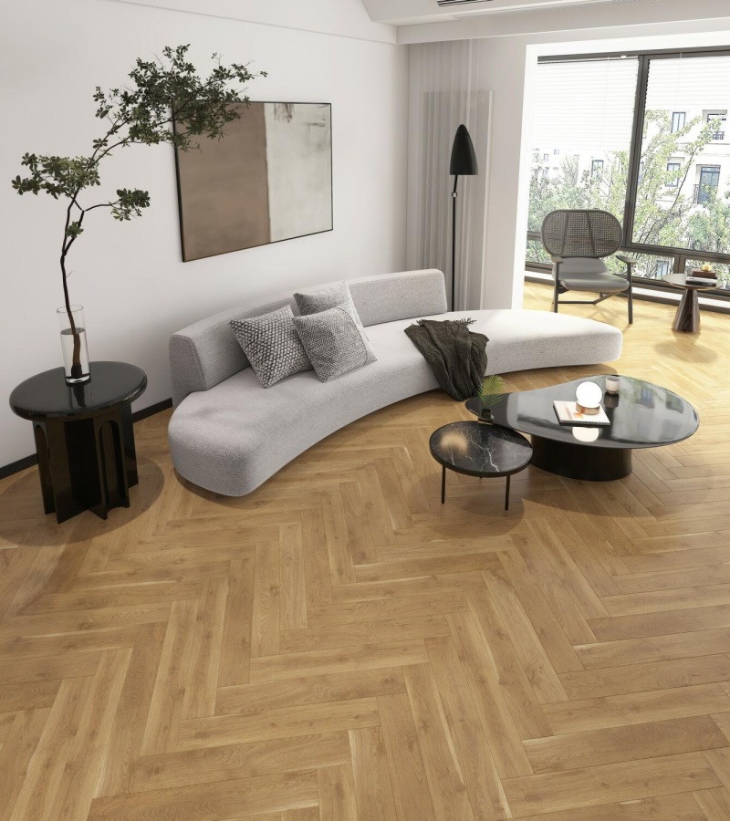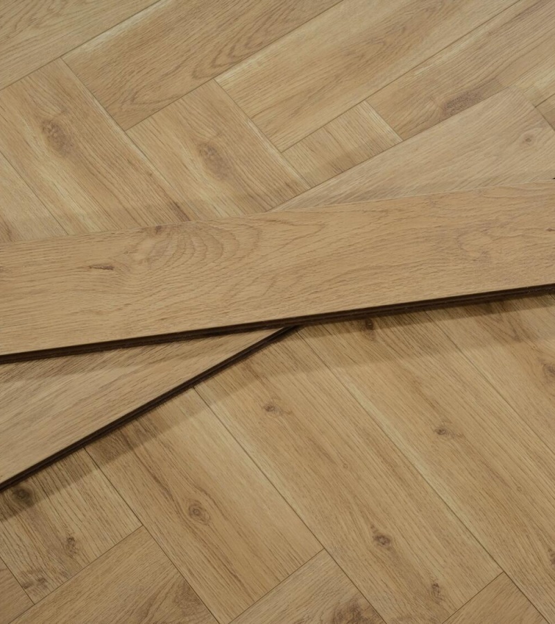 Покрытие полностью готово к использованию и не требует дополнительной отделки. Верхний слой с рисунком «Ёлочка» гармонично вписывается в любой интерьер и сочетается с различными отделочными материалами стен и потолка. Толщина доски составляет 12 мм, что обеспечивает прочность пола и устойчивость к прогибу. Ламинат выдерживает значительные нагрузки от мебели, не оставляя следов от ножек и царапин. Также он обладает хорошими теплоизоляционными свойствами, предотвращая проникновение холода внутрь помещения.