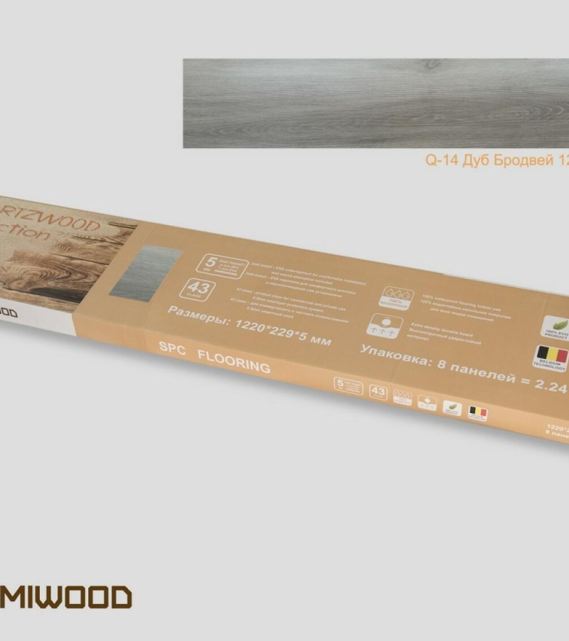 Кварцвиниловый ламинат Q-14 Дуб Бродвей — это SPC-ламинат толщиной 5 мм, предназначенный как для напольного покрытия, так и для облицовки стен. Он обладает 100% водонепроницаемостью и встроенной подложкой. Коллекция QUARTZWOOD предлагает доступный по цене, но качественный кварцвиниловый ламинат, произведенный из SPC-материала и имеющий класс износостойкости 43. Защитный слой толщиной 0,5 мм обеспечивает долговечность покрытия. Ламинат Lamiwood оснащен замковым соединением и микрофаской типа "micro V". Он подходит для использования как в жилых, так и в коммерческих помещениях. В одной упаковке содержится 8 панелей, что эквивалентно площади 2,24 м².