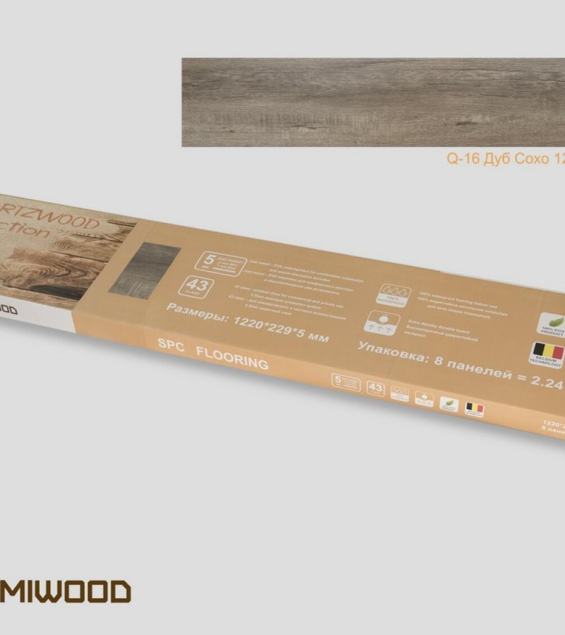 Виниловый ламинат Lamiwood QUARTZWOOD Q-16 Дуб Сохо отвечает международным стандартам экологической безопасности и подходит для использования в жилых помещениях любого назначения. Его внешний вид полностью соответствует изображению на фотографии, а при применении подходящих моющих средств он сохраняет свои свойства и не тускнеет со временем. Ламинат легко монтируется и отличается высокой прочностью: он сохраняет геометрию укладки на протяжении всего срока службы, не рассыхается и не образует зазоры в местах стыков.